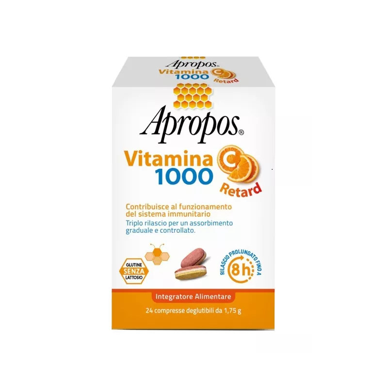 Descrizione Integratore alimentare ad alto dosaggio di vitamina C (1 g), che contribuisce al buon finanziamento del sistema immunitario e alla protezione delle cellule dallo stress ossidativo. L'innovativa tecnologia a tre stadi di rilascio controllato, permette un assorbimento graduale e prolungato nel corso della giornata, garantendo all'organismo una fonte di vitamina C biodisponibile fino a 8 ore.
