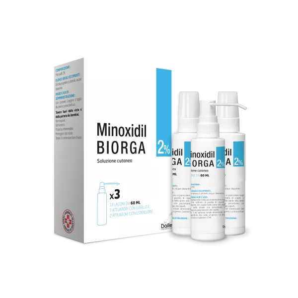 Minoxidil Biorga 2%, soluzione cutanea è un medicinale in forma liquida, da applicare direttamente sul cuoio capelluto. Si usa come trattamento per la perdita dei capelli e non come una cura. Il minoxidil è un vasodilatatore periferico, il cui esatto meccanismo di ripristino della crescita dei capelli non è noto.