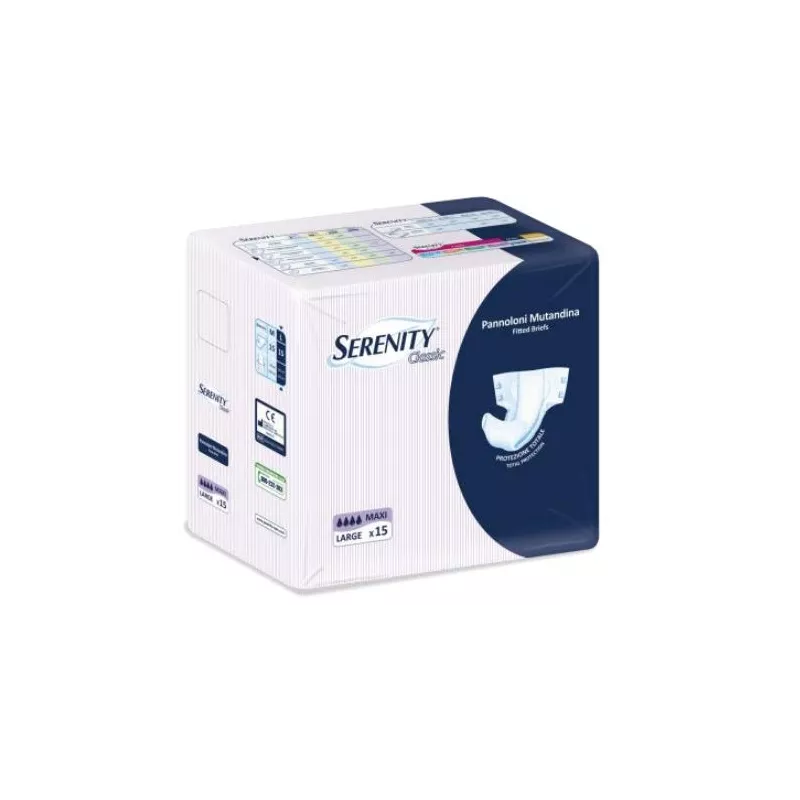 Pannolone a mutandina con sistema integrato di fissaggio ad etichette adesive riposizionabili, composto da un rivestimento esterno impermeabile morbido, atossico e di un rivestimento interno in TNT resistente e ipoallergenico, trattato con sostanza dermoprotettiva. Dotato di due barriere antifuoriuscita laterali, corpo centrale assorbente (materassino) in cellulosa a fibra lunga e polimeri superassorbenti (super-absorbent polymers).
