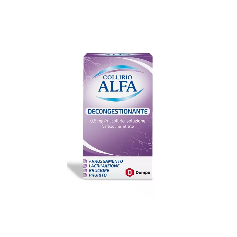 Collirio Alfa decongestionante si usa in caso di arrossamento, lacrimazione, bruciore e prurito degli occhi, causati da fenomeni irritativi (eccessiva esposizione a polvere, fumo, ecc.).