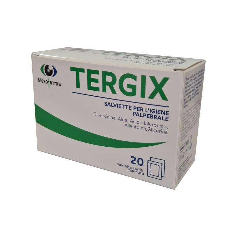 Tutti i componenti di Tergix risultano utili per ottenere un ottimale trattamento nel pieno rispetto della particolare fisiologia della zona perioculare, particolarmente delicata e sensibile. Il prodotto è in grado di operare un trattamento accurato rimuovendo le secrezioni, eventuali corpi estranei, polvere, ecc.