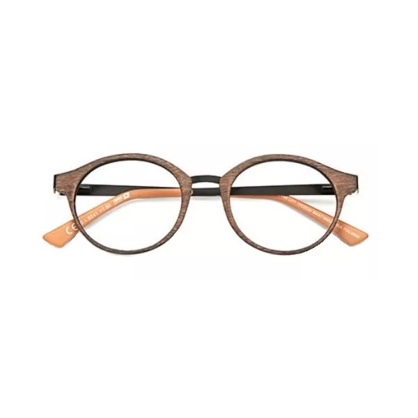 Occhiali da lettura, montatura circolare, montatura in materiale iniettato e durevoli astine in metallo, particolarmente pratiche perché flessibili.