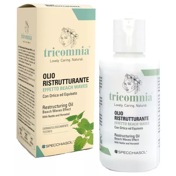 Olio ristrutturante effetto beach waves è un olio non olio con una formulazione ricca di ingredienti dalle proprietà lucidanti e modellanti. Conferisce luminosità, morbidezza e protezione a tutti i tipi di capelli. Formulato con ortica, equiseto ed elicriso rigenera e rinforza la chioma donando un look “beach waves”.