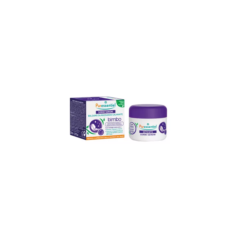 Prodotto cosmetico dell'aromaterapia, formula 100% naturale. La texture fondente di questo balsamo, arricchita con oli vegetali idratanti e nutrienti (Mandorla dolce, oliva, macadamia, vinaccioli d'uva) permette un massaggio delicato. La sua composizione a base di estratti naturali di camomilla matricaria, di lavanda vera bio, di arancio bio e di maggiorana bio libera effluvi aromatici calmanti e rilassanti che favoriscono il rilassamento. Questo balsamo da massaggio è ideale per calmare e preparare al riposo i più piccoli a partire dai 6 mesi. Senza conservanti, ftalati, parabeni, fenossietanolo. Testato sotto controllo dermatologico e pediatrico.