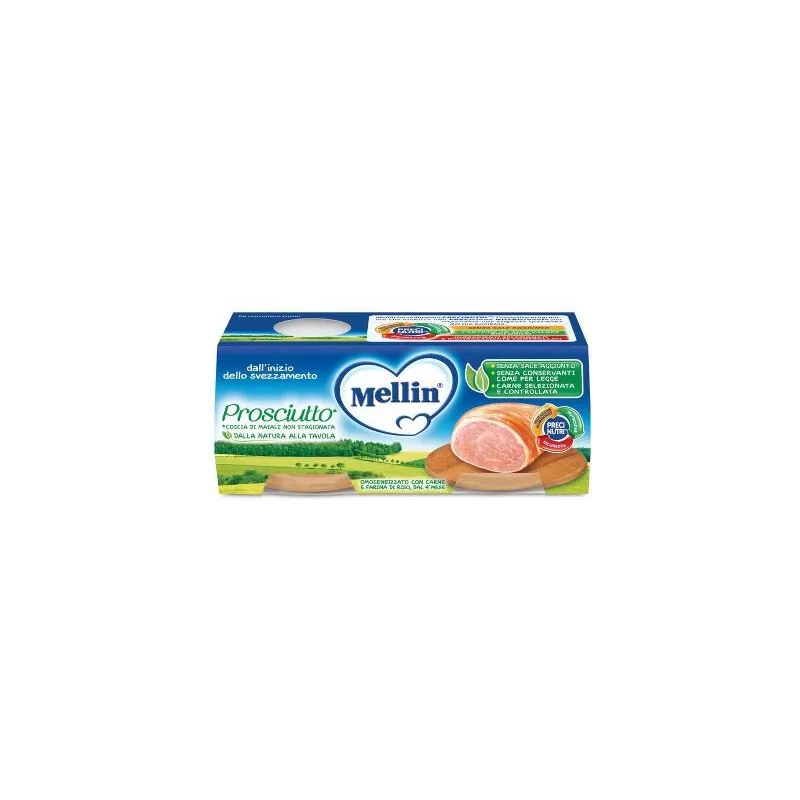 Omogeneizzato con carne di Prosciutto* e farina di riso senza sale aggiunto.