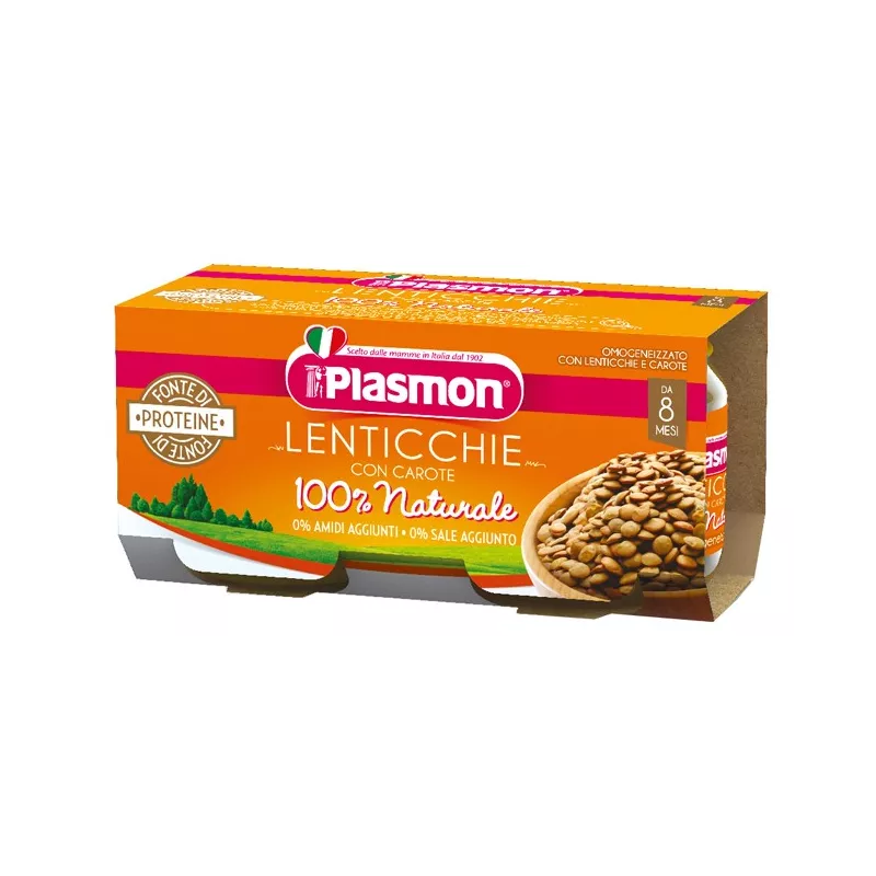 L'omogeneizzato lenticchie e carote è ideale per far assaggiare al tuo bambino i legumi e variare il gusto della pappa. L'omogeneizzato lenticchie con carote plasmon consumato in combinazione con i cereali rappresenta una fonte di proteine alternativa alla carne, al pesce e al formaggio, nell'ambito di una dieta varia.