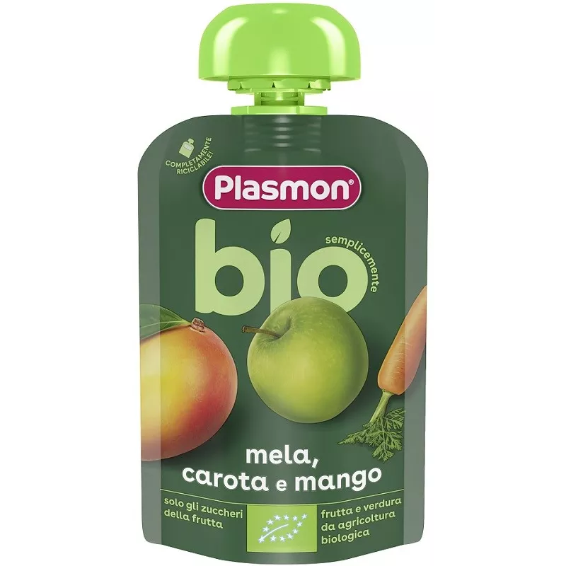 Descrizione Alimento per l'infanzia biologico: omogeneizzato mela, carota e mango. Prodotto indicato a partire dal 6° mese compiuto, salvo diverso parere del pediatra.