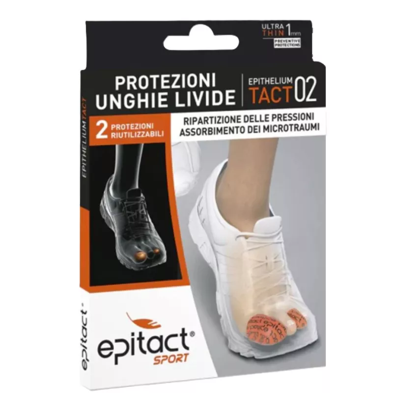 ERGONOMIA: Discrete e di modesto spessore, le protezioni per unghie livide EPITHELIUMTACT 02 sono state appositamente sviluppate per adattarsi perfettamente a qualsiasi tipo di calzatura. Le forme specifiche, che seguono l'ergonomia delle dita, danno un comfort immediato e garantiscono una perfetta tenuta durante tutta l'attività sportiva persino in condizioni estreme.