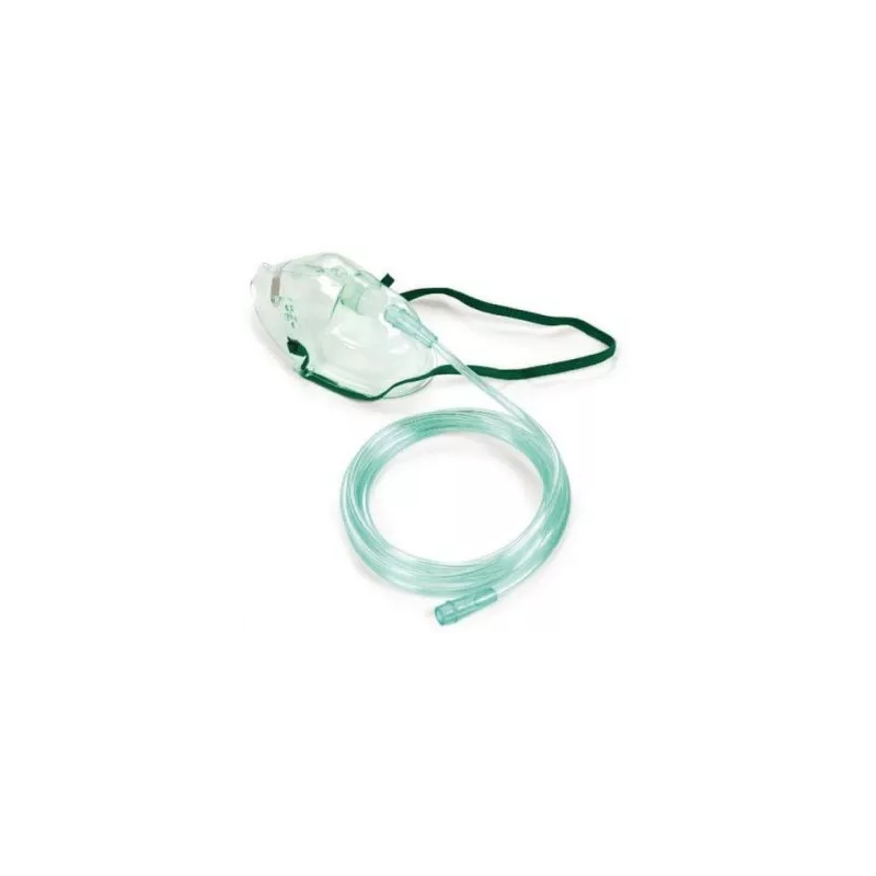 Maschera per ossigenoterapia adulti a media concentrazione. Per offrire al paziente una migliore ossigenazione tramite una maschera collegata ad un supporto di ossigeno che viene posizionata sul viso del paziente. Questo dispositivo viene utilizzato negli ospedali, in ambiente pre-ospedalieri, a casa o per fornire ossigeno supplementare a pazienti o persone che necessitano di ossigeno extra.