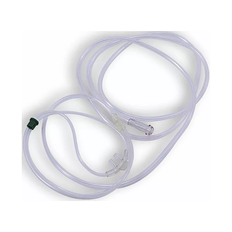 Cannula nasale con supporto flessibile e punte coniche per un confort ideale della zona nasale. Completa di tubo antischiacciamento per l’Ossigeno lungo 120 cm.