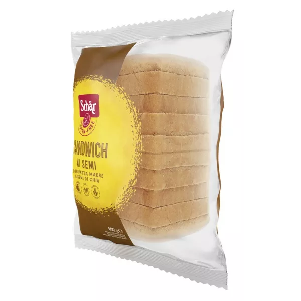 Ingredienti Amido di mais, acqua, pasta madre 18% (farina di riso, acqua), farina di miglio 5%, fibra di mela, olio di semi di girasole, sciroppo di riso, amido di riso, semi di chia 2,4%, semi di lino 2,4%, semi di girasole 2,4%, semi di miglio 1,8%, proteine di