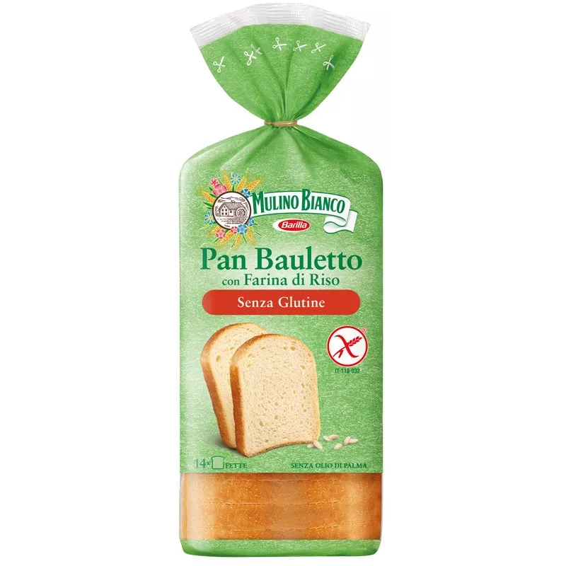 Descrizione Pane senza glutine specificatamente formulato per persone intolleranti al glutine con farina di riso e olio di girasole. Ricco di fibre. Senza olio di palma.