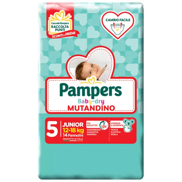 Pampers Baby Dry Mutandino Junior, 14 Pannolini, Taglia 5 (12-18 kg).