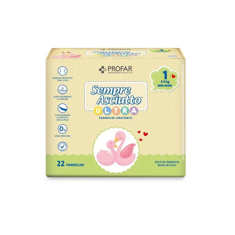 PROFAR SEMPRE ASCIUTTO PANNOLINO ANATOMICO ULTRA NEW BORN 2/5KG 22 PEZZI