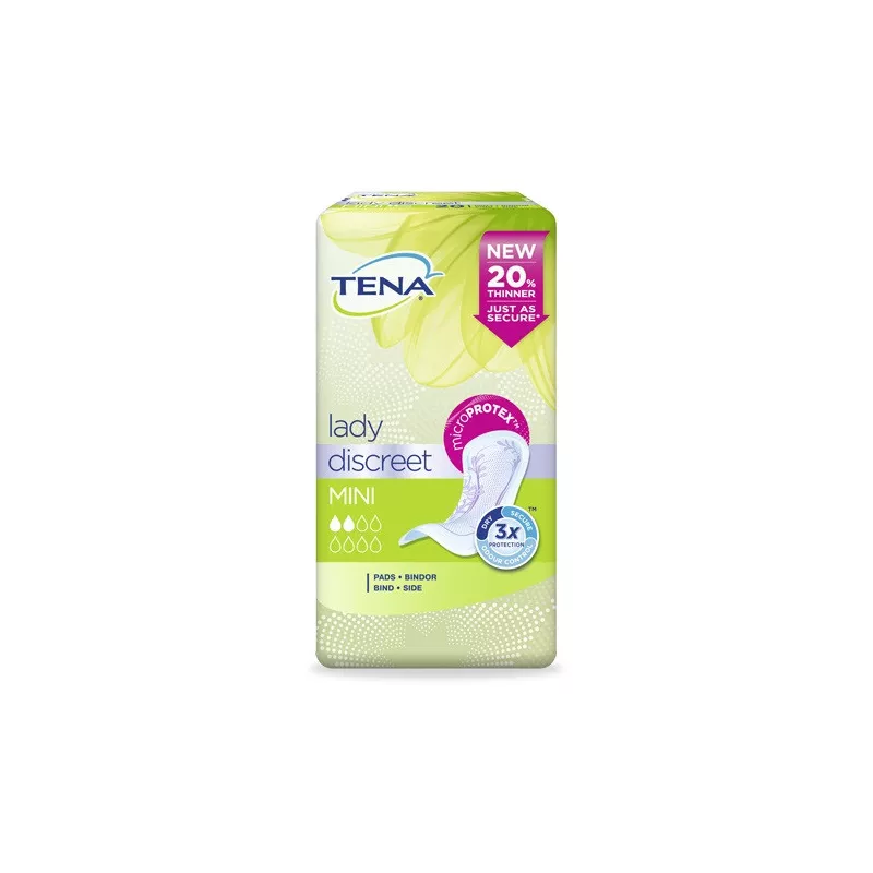 Ogni assorbente TENA Lady Discreet Mini è confezionato singolarmente con il sistema Easy Wrap e può essere comodamente tenuto in tasca o in borsa. Gli assorbenti TENA Lady Discreet Mini possono essere portati ovunque e smaltiti in modo discreto.