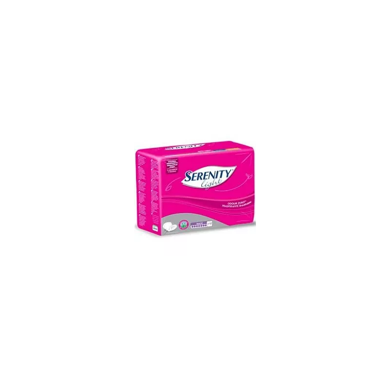 Dispositivo medico CE. Serenity Light si fissa alla normale biancheria intima, grazie alla striscia adesiva longitudinale. Il tampone assorbente sottile e compatto, permette di assorbire rapidamente e trattenere il liquido all’interno dell’assorbente, lontano dalla pelle, lasciando una sensazione di asciutto. La sua sagoma anatomica protegge dove serve, senza segnare. Le particolari fettucce elasticizzate curve, aderiscono in maniera ottimale al corpo e offrono grande comodità. L’Aloe presente sul tessuto non tessuto a contatto con la pelle offre una piacevole sensazione di delicatezza, mentre il rivestimento esterno in tessuto non tessuto traspirante favorisce la traspirabilità cutanea. In più Serenity Light è dotato del sistema Odour Zero che ostacola la formazione dei cattivi odori.