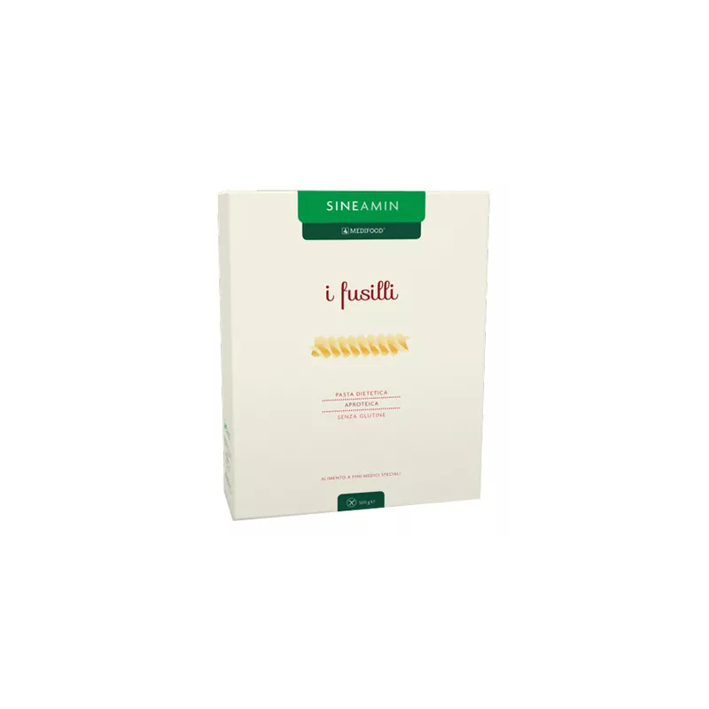DescrizionePasta aproteica e senza glutine. Per il trattamento dietoterapico di soggetti con insufficienza renale cronica e aminoacidopatie metaboliche. La pasta Sineamin è inoltre indicata nelle diete aproteiche, prive di glutine ed a basso contenuto di sodio, potassio e fosforo.