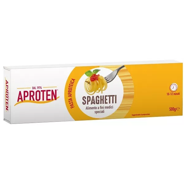 Descrizione La Pasta aproteica della linea di prodotti APROTEN, è caratterizzata da: contenuto basso di proteine, sodio, fosforo e potassio che la rendono indicata per la gestione dietetica di insufficienze renali (nefropatie); contenuto basso di tirosina e fenilalanina che la rendono indicata per la gestione dietetica di aminoacidopatie metaboliche (fenilchetonuria, tirosinemia); contenuto basso di proteine che la rendono indicata per la gestione dietetica del morbo di Parkinson (in terapia con Levodopa). Per il paziente in terapia con Levodopa deve essere valutato il grado di eventuale disfagia e le eventuali problematiche di malnutrizione per difetto che possono insorgere in condizioni di restrizione proteica.