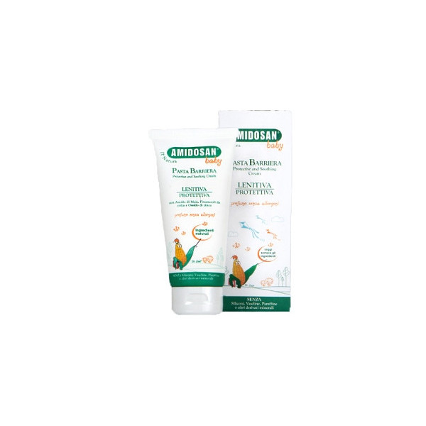 Amidosan Baby Pasta Barriera, con la sua composizione di origine naturale, a base di ossido di zinco, senza vaseline e paraffine (comuni in questo tipo di prodotti ma occlusive e comedogeniche) senza PEG e con la presenza di fitosteroli, burro di karité, vitamine e preziosi oli emollienti, assicura un rapido effetto lenitivo e riequilibrante.