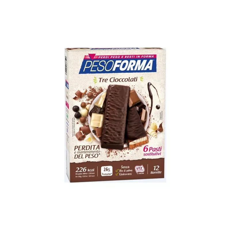 Descrizione Pasto sostitutivo per la perdita e controllo del peso. Completo ed equilibrato, contiene 13 vitamine e 11 minerali, ricco di proteine e di fibre, senza olio di palma ed edulcoranti. Gusto: tre cioccolati.
