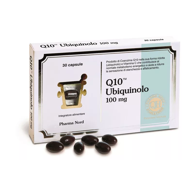 Descrizione Integratore alimentare di coenzima Q10 nella sua forma ridotta (ubiquinolo) e vitamina C che contribuisce al normale metabolismo energetico e aiuta a ridurre la sensazione di stanchezza e affaticamento.