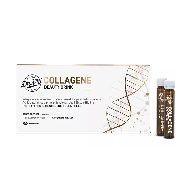 Descrizione Integratore alimentare liquido formulato con biopeptidi di collagene idrolizzato, acido jaluronico e altri principi funzionali quali zinco e biotina, indicati per il benessere della pelle.