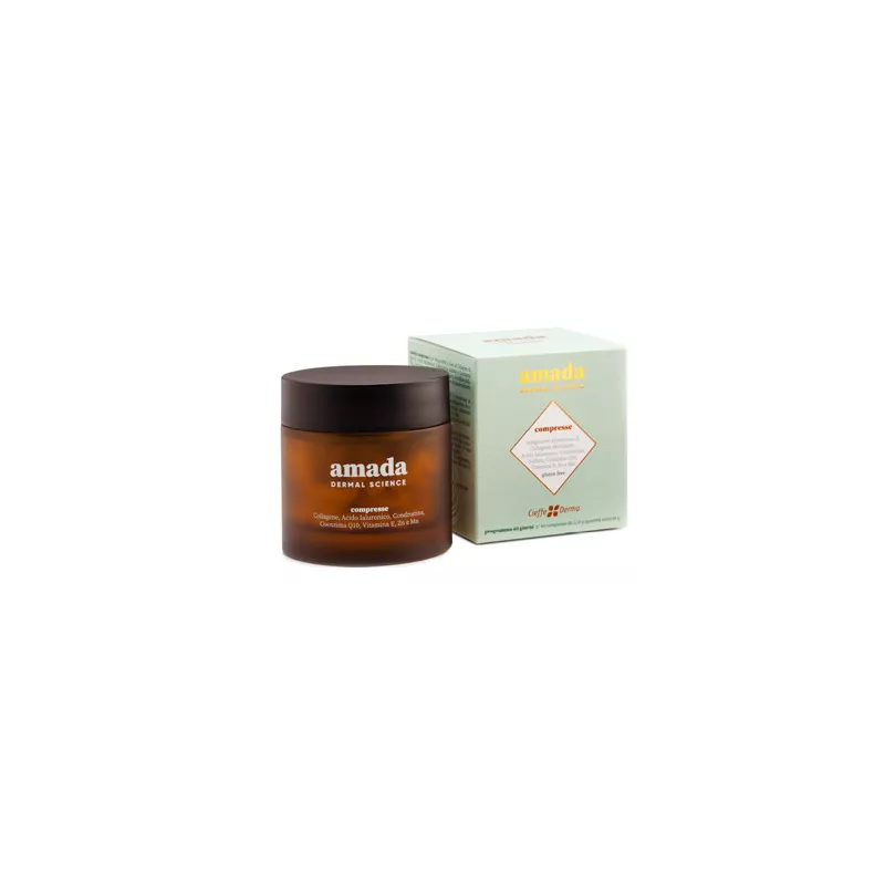 Integratore alimentare a base di collagene di tipo II, acido ialuronico, condroitina e coenzima Q10. Con zinco e vitamina E che proteggono le cellule dallo stress ossidativo. Lo zinco contribuisce anche al mantenimento di una pelle normale. Amada compresse è costituito da un complesso di attivi altamente biodisponibili e ben tollerati, e rappresenta un valido supporto nel combattere i segni dell'invecchiamento sulla pelle. Ideale nella preparazione e nel follow up dei trattamenti di estetica, in quanto stabilizza l'applicazione dei filler di collagene e acido ialuronico. Agisce dall'interno e conferisce elasticità, idratazione e compattezza all'epidermide, riducendo la comparsa di linee sottili e rughe, per una pelle dall'aspetto più giovane e luminoso.