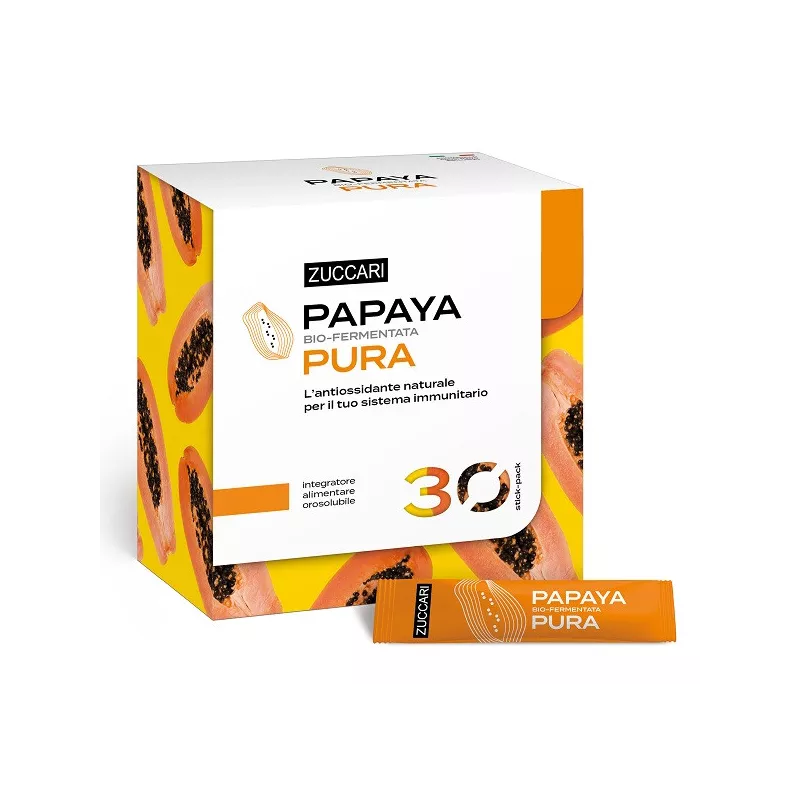 Modalità d'uso Si consiglia di assumere uno stick-pack al giorno, preferibilmente lontano dai pasti, direttamente sotto la lingua. Per facilitare l'assorbimento non consumare cibi e bevande nei 5 minuti successivi all'assunzione. Papaya Pura può essere consumata in ogni stagione.