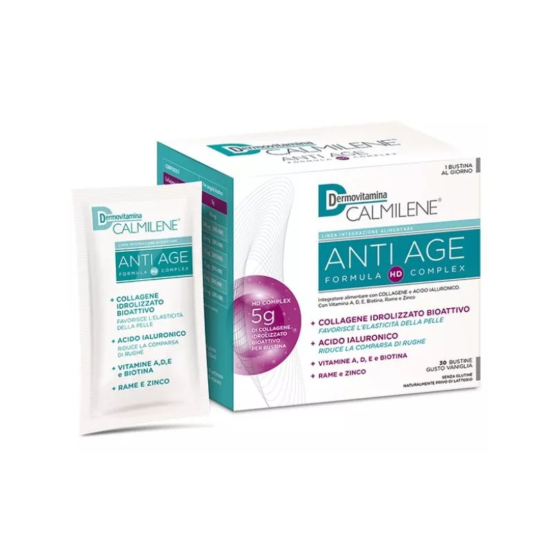 Ingredienti HD Complex [Collagene idrolizzato, Sodio ialuronato, Vitamina E (acetato di DL-alfa-tocoferile), Vitamina A (acetato di retinile), Vitamina D (colecalciferolo), Biotina (D-biotina)], maltodestrina, aroma, agente antiagglomerante: biossido di silicio; edulcorante: sucralosio; Citrato di zinco, Citrato di rame.