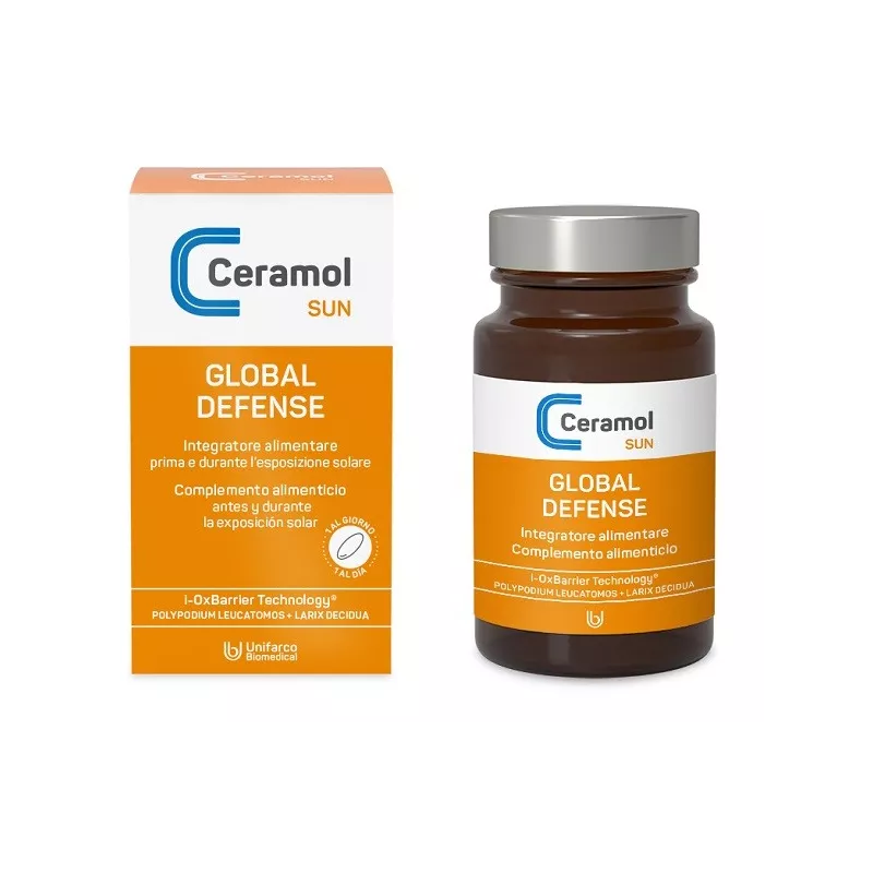 Descrizione Integratore alimentare a base di polipodio, larice, vitamina C e niacina, con i-OxBarrier Technology, esclusivo complesso con Polypodium leucotomos e Larix decidua, e principi antiossidanti. Il polipodio favorisce il trofismo e la funzionalità della pelle. L’estratto di larice stimola le naturali difese dell’organismo. La vitamina C contribuisce alla normale funzione del sistema immunitario, alla protezione delle cellule dallo stress ossidativo e alla normale formazione del collagene per la normale funzione della pelle. La niacina contribuisce al mantenimento di una pelle sana.