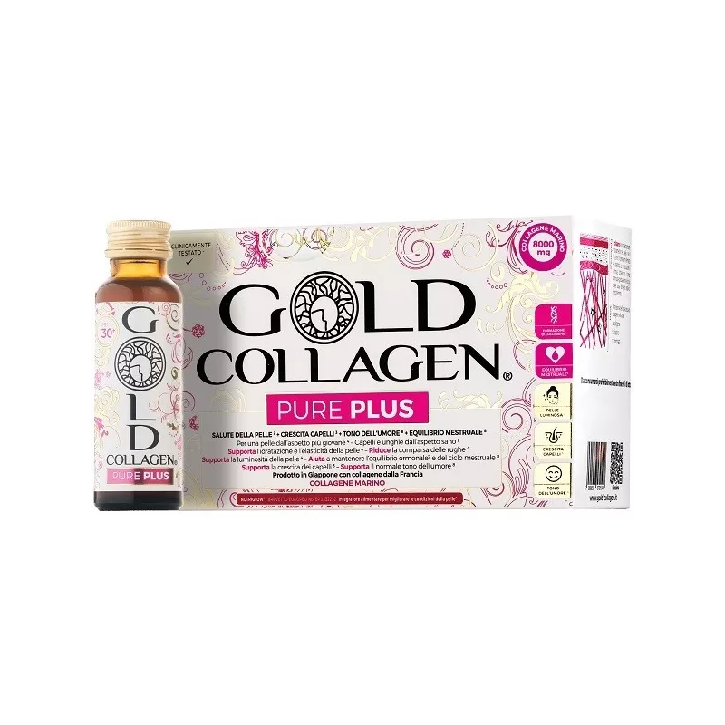 Avvertenze Non superare la dose giornaliera consigliata. Tenere fuori dalla portata dei bambini al di sotto dei 3 anni di età. Gli integratori alimentari non vanno intesi come sostituti di una dieta variata ed equilibrata e di uno stile di vita sano. Un consumo eccessi può avere effetti lassativi. Durante la gravidanza e l'allattamento o in presenza di malattie o concomitante uso di farmaci, consultare il medico prima di assumere GOLD COLLAGEN PURE PLUS. Tenere fuori dalla portata dei bambini al di sotto dei tre anni. Non adatto a minori di 18 anni.