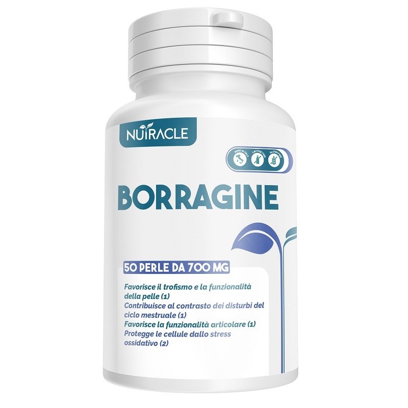 Descrizione Integratore alimentare a base di borragine che favorisce sia il trofismo che la funzionalità della pelle e contribuisce al contrasto dei disturbi del ciclo mestruale. Inoltre la presenza di vitamina E svolge un'azione antiossidante.