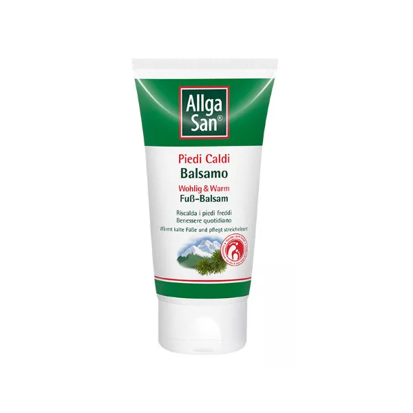 Allga San Piedi Caldi contiene olio di pino mugo dell‘Algovia, olio di rosmarino ed estratti vegetali di genziana e zenzero. Per piedi caldi e benessere quotidiano. Pelle morbida e vellutata.