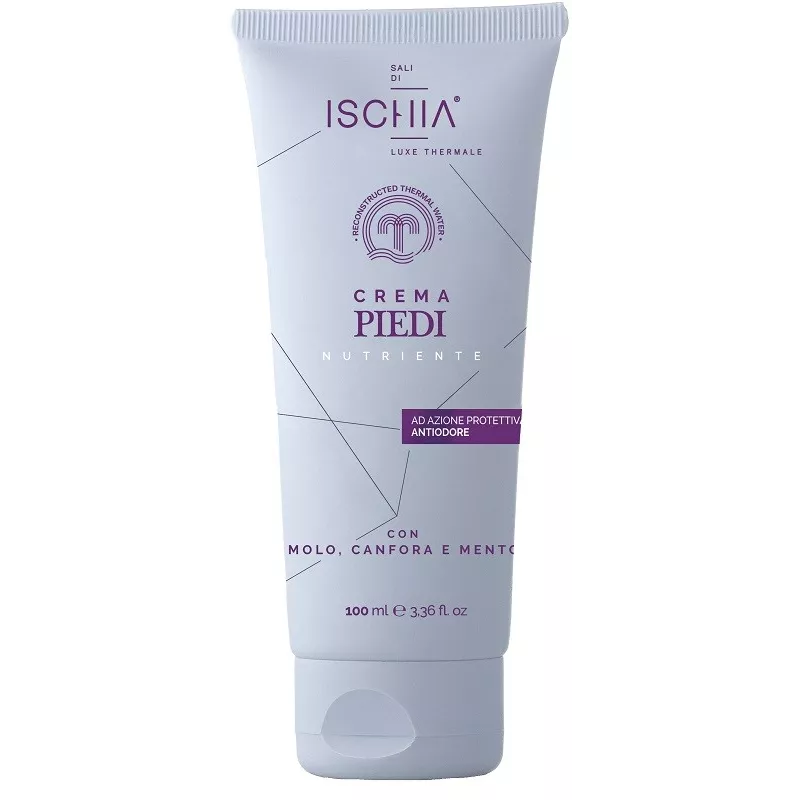 Crema piedi formulata con glicerina vegetale ad alta percentuale e sali termali, per idratare e nutrire in profondità la pelle secca e screpolata anche 24h. Elimina gli odori grazie all'azione del timolo, canfora e mentolo. Texture fresca e leggera dal rapido assorbimento.