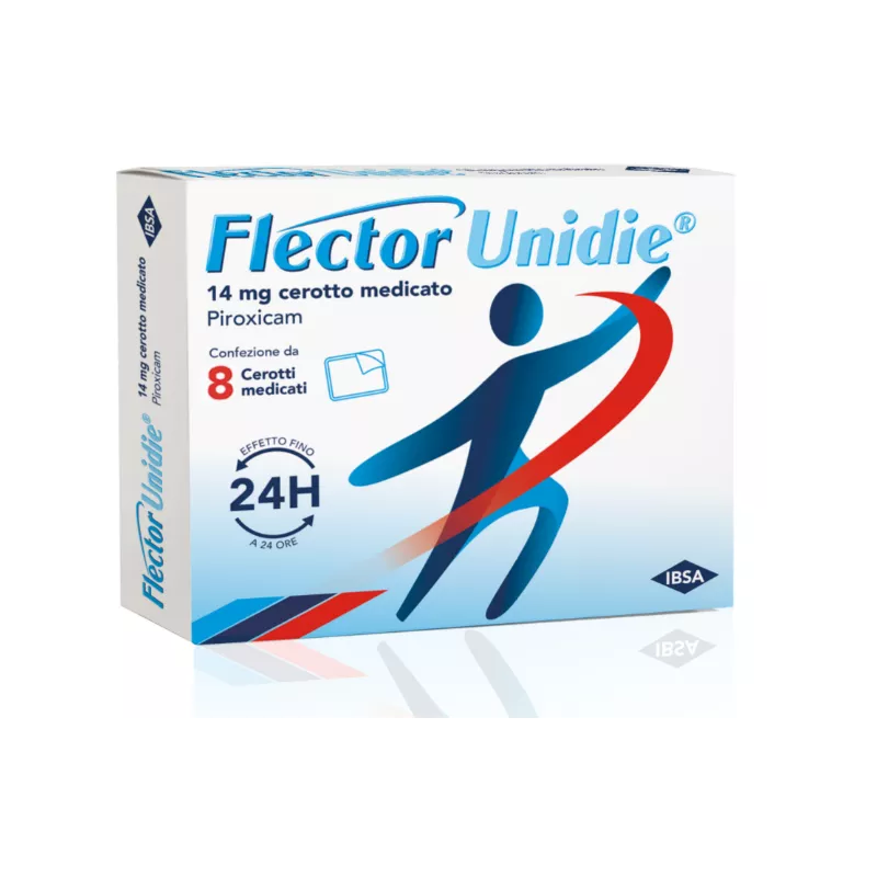 Poiché FLECTOR UNIDIE cerotto è applicato direttamente sull'area interessata, il rischio di avere effetti indesiderati che interessano tutto il corpo (sistemici), come problemi allo stomaco o all'intestino, è più basso rispetto all'assunzione di piroxicam per bocca.