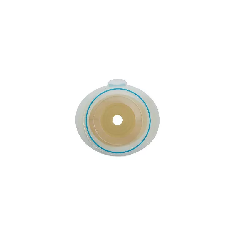Placca: l'adesivo, progettato grazie alla BodyFit Technology, è elastico, di nuova concezione e formato da due strati; ha forma ovale e la sua struttura elastica garantisce adesività, sicurezza e protezione della cute. Lo strato più interno ha una speciale struttura a reticolo che ingloba idrocolloidi di piccole dimensioni: a contatto con le deiezioni si trasforma in un gel coeso e compatto, con alta resistenza all’erosione. Si crea così un sigillo protettivo che riduce l’insorgere di infiltrazioni unitamente al mantenimento del corretto gradiente di umidità cutanea, favorente la riparazione tissutale. Lo strato più esterno ha una capacità elastica dell’adesivo che permette a questo strato di adattarsi perfettamente alle irregolarità della cute offrendo un’elevata adesività istantanea e una conseguente sicurezza in uso.