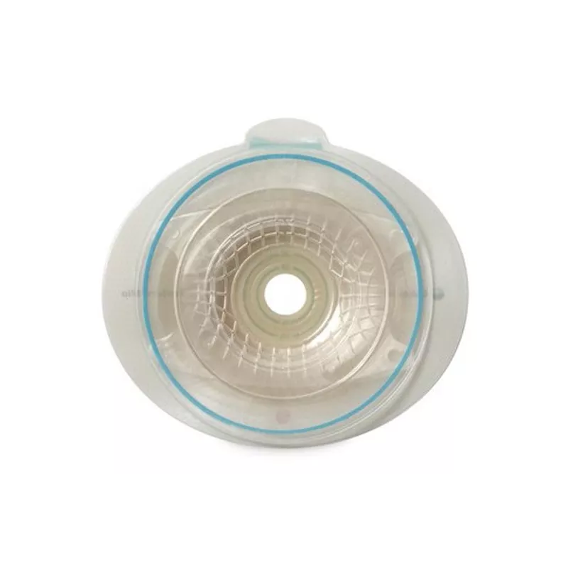Placca convessa per colostomia, ileostomia e urostomia con aggancio adesivo, è una placca costituita da un adesivo a base idrocolloidale e da un anello flottante dotato di guida, per il corretto posizionamento della sacca di raccolta.