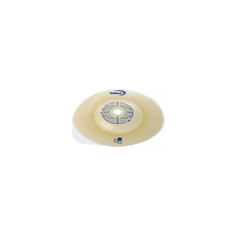 Placca convessa con flangia per colostomia ed ileostomia sistema a due pezzi, dotata di barriera protettiva autoportante con miele di Manuka.