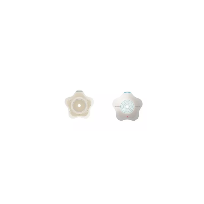 L’anello rende stabile la zona centrale in modo che lo stoma abbia il supporto necessario. La placca piana è indicata per persone con conformazione addominale regolare, grazie alla BodyFit Technology, è costituita da un adesivo elastico; ha forma ovale e la sua struttura elastica garantisce adesività, sicurezza, protezione della cute e atraumaticità in fase di rimozione su tutte le superfici della cute peristomale.