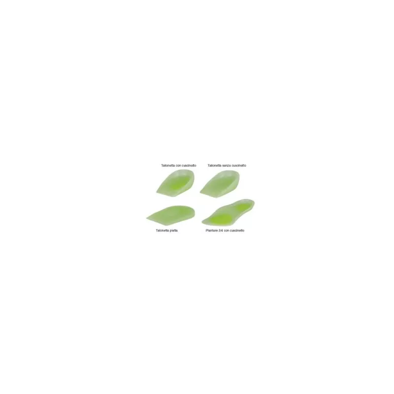 - Per soggetti con problematiche di spina calcaneale, è disponibile il modello di tallonetta con cuscinetto dove, nella zona in cui vi è la maggiore sofferenza, è stato iniettato un silicone con grado di morbidezza superiore. Questa zona è evidenziata, in tale tipo di tallonetta, dal colore giallo. Distinguibili in destra e sinistra dalla loro inclinazione, le tallonette sono applicabili a tutti grazie alla loro consistenza media che offre la possibilità di un adattamento a qualsiasi peso.
