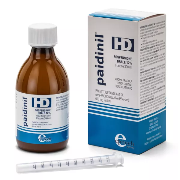 Descrizione Sospensione orale da utilizzare sotto controllo medico, per il regime alimentare, in situazioni di neuroinfiammazione non controllata, di pazienti in età pediatrica al di sopra dei 3 anni con: