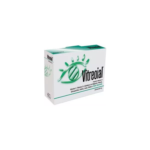 Complemento alimentare di vitamina C, vitamina E e glutatione con magnesio, potassio, idrossiprolina, istidina, lisina, glicina e sodio ialuronato che, grazie ai suoi componenti, agisce favorevolmente sul trofismo dei tessuti connettivi come il corpo vitreo dell’occhio. Il glutatione, la vitamina C e la vitamina E possono contribuire alle difese nei confronti degli agenti foto ossidativi che possono predisporre ad alterazioni oculari.
