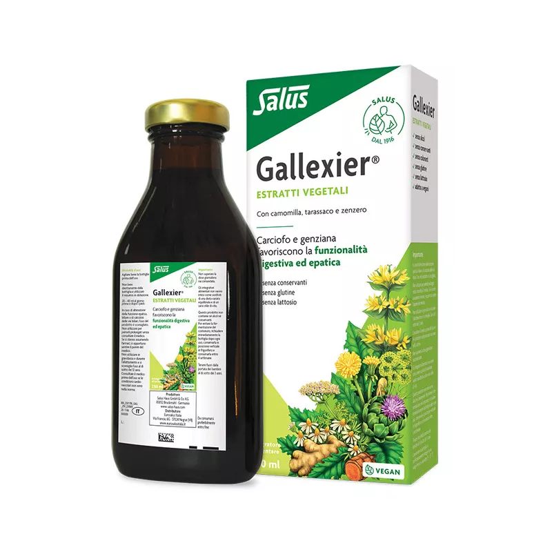 Ingredienti Estratto acquoso di piante (75%): carciofo (Cynara cardunculus L.) foglia, tarassaco (Taraxacum officinale Weber) foglia, genziana (Gentiana lutea L.) radice, curcuma rizoma, achillea millefoglie (Achillea millefolium L.) parte aerea, zenzero (Zingiber officinale Rosc.) rizoma, camomilla (Matricaria recutita L.) fiore, finocchio (Foeniculum vulgare Mill.) frutto, arancia amara (Citrus aurantium L.) buccia, cardo benedetto (Cnicus benedictus L.) parte aerea, trifoglio fibrino (Menyanthes trifoliata L.) foglia, cardamomo [Elettaria cardamomum (L.) Maton] frutto; sciroppo di fruttosio.