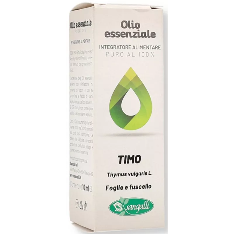 Olio essenziale ottenuto per distillazione a vapore da foglie e fuscelli di Thymus vulgaris L. (origine Spagna).