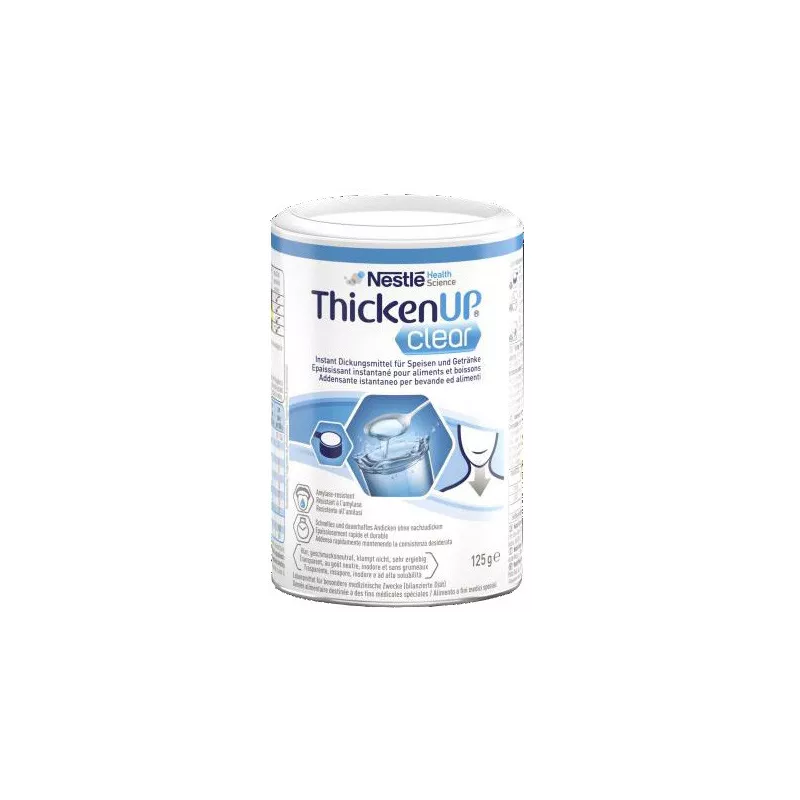 Modalità d'uso Aggiungere ThickenUp Clear nel bicchiere, aggiungere acqua o altri liquidi e scolare fino a completa dissoluzione per 1-2 minuti.