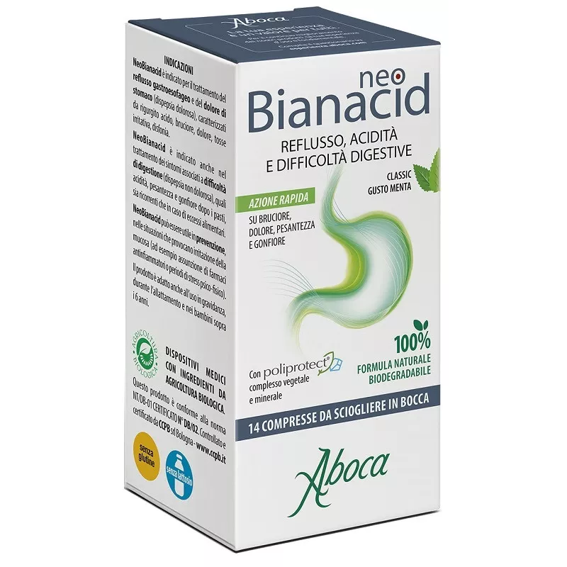 Indicato per il trattamento del reflusso gastroesofageo e del dolore di stomaco (dispepsia dolorosa), caratterizzati da rigurgito acido, bruciore, dolore, tosse irritativa, disfonia.