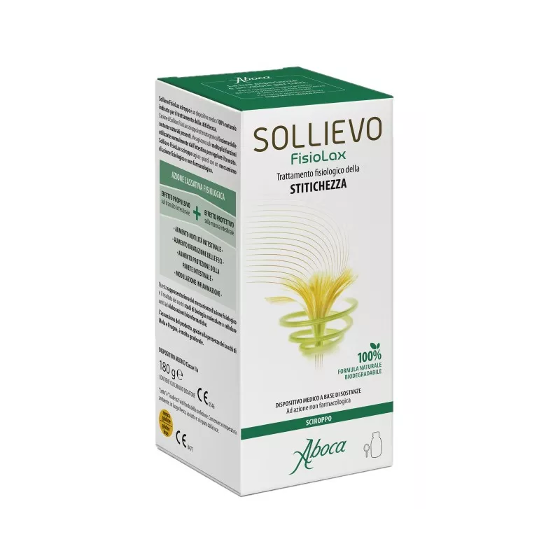 Dispositivo medico classe IIa, 100% naturale indicato per il trattamento della stitichezza. L’azione è ottenuta grazie all’insieme delle sostanze naturali presenti, che agiscono sulle molteplici funzioni utilizzate normalmente dall’intestino per regolare il transito. Sollievo FisioLax sciroppo agisce quindi con un meccanismo di azione fisiologico e non farmacologico. L’assunzione del prodotto, grazie alla presenza dei succhi di mela e prugna, è molto gradevole.