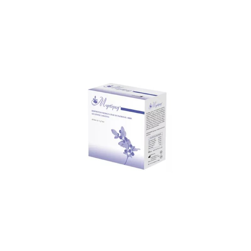 Sciogliere una bustina in una tazza colma d’acqua (almeno 200/250 ml) e berla appena preparata. Si consiglia di assumere Myrtipeg lontano dai pasti. La dose per adulti e bambini di peso superiore ai 20 kg è di una bustina 1-3 volte al giorno secondo risposta individuale; in caso di uso prolungato, la dose può essere ridotta ad 1 bustina 1-2 volte al giorno, anche a giorni alterni, preferibilmente la sera prima di coricarsi. La dose per adulti è di una/due bustine al giorno in base alla risposta individuale. In caso di uso prolungato, la dose può essere ridotta ad una bustina una o due volte al giorno, anche a giorni alterni, preferibilmente la sera prima di coricarsi. La dose giornaliera per bambini di peso superiore a 20 kg è da stabilire in base al peso corporeo: 0,5 g/kg di peso corporeo, fino ad un massimo di due bustine/die (corrispondenti ad un peso corporeo di 40 kg).