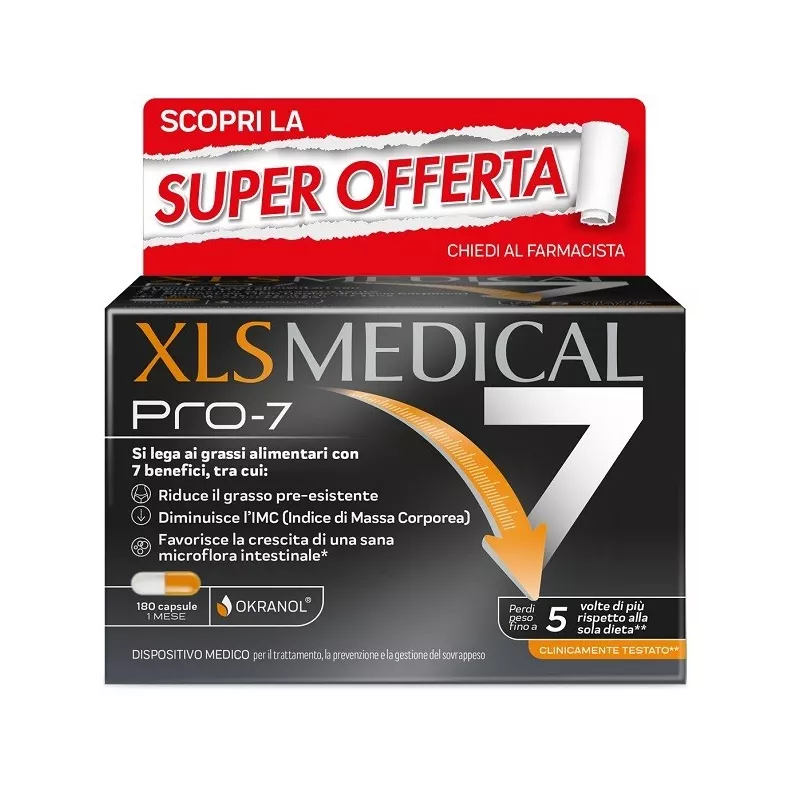 XLS MEDICAL PRO-7 ha caratteristiche di sicurezza e tollerabilità certificate. Non è un pasto sostitutivo.