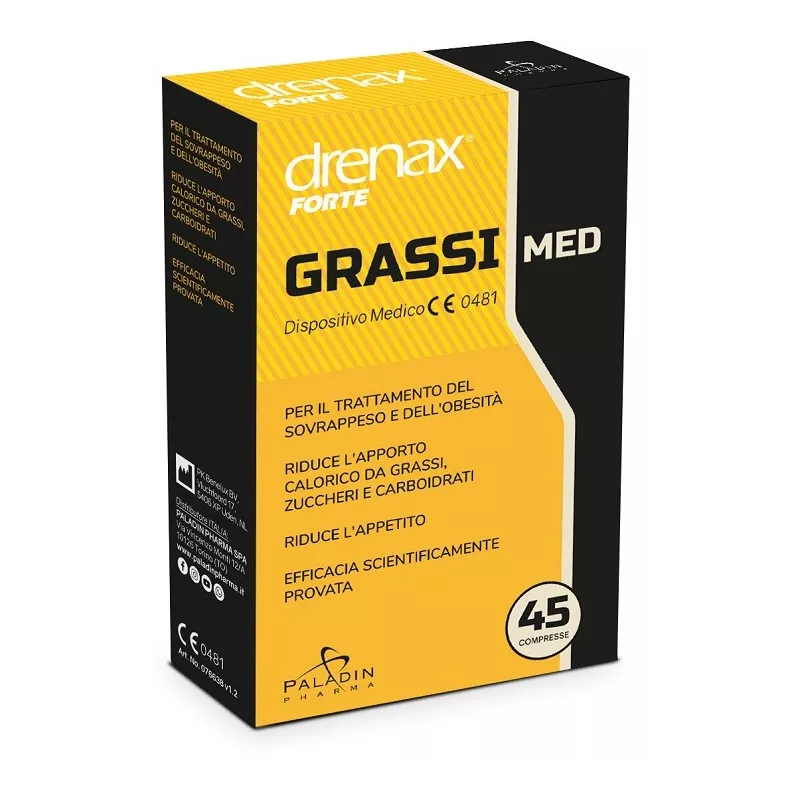 I principi attivi sono l'estratto di Omtec 50 e Omtec XS. Omtec 50 è una fibra naturale con un'elevata capacità di legare i lipidi. Aiuta a neutralizzare le calorie da alimenti ad alto contenuto di grassi. L'estratto di Omtec XS inibisce l'enzima alfa-amilasi pancreatica che digerisce l'amido. Interromper il processo di digestione dei carboidrati. La sostanza naturale Omtec 50, insieme all'estratto di Omtec XS, contenuti in Drenax Forte Grassi Med formano una sostanza simile a un gel nello stomaco. Questa sostanza gelatinosa si mescola con il cibo. In questo processo, i grassi, carboidrati e zuccheri così trasformati non entrano nel ciclo metabolico, ma vengono escreti senza essere digeriti.
